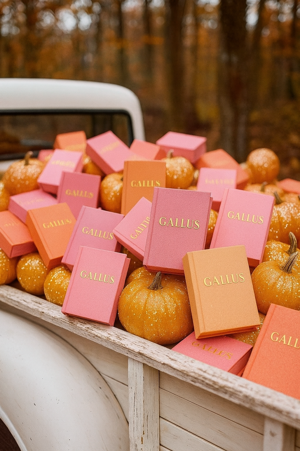 "Create an ad for the [product description] in the image attached. Lifestyle-inspired autumn harvest advertisement. A rustic wooden truck bed is overflowing with small pumpkins covered in glitter and scattered [PRODUCT]s. The scene is outdoors, surrounded by a blurred forest filled with golden-brown autumn foliage. Composition: abundant and overflowing, pumpkins sparkling with glitter intermixed with [PRODUCT]s, creating a festive harvest atmosphere. Lighting: warm natural daylight with soft highlights. Style: rustic, cozy, seasonal lifestyle editorial photography."